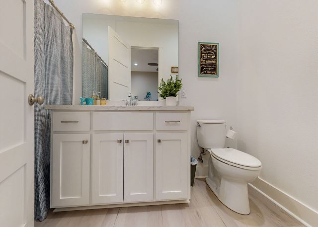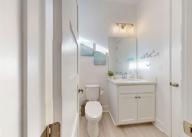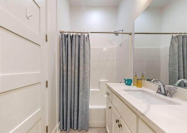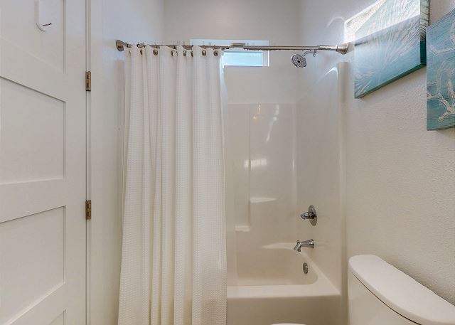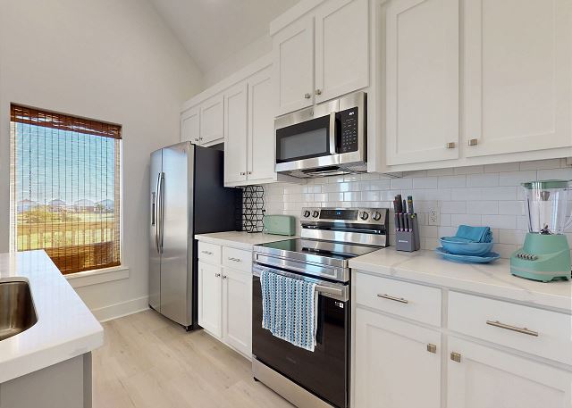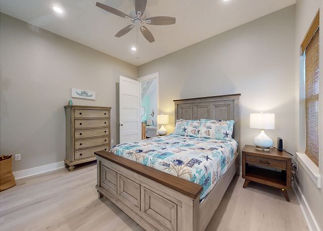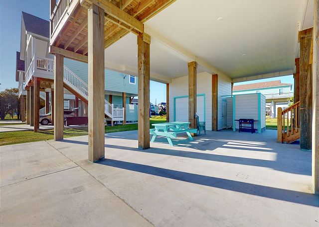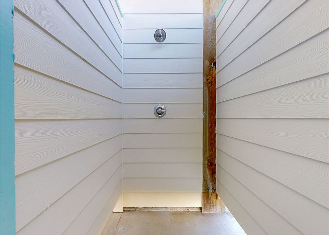 After a day of sun and sand, rinse off in the outdoor shower and unwind under the stars. There is a charcoal grill for dining al fresco, and space for just relaxing with family and friends. You will want to come back again for A Beach'en Good Time!