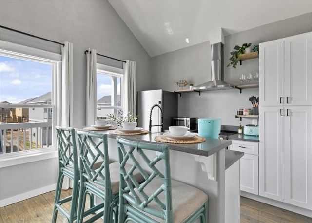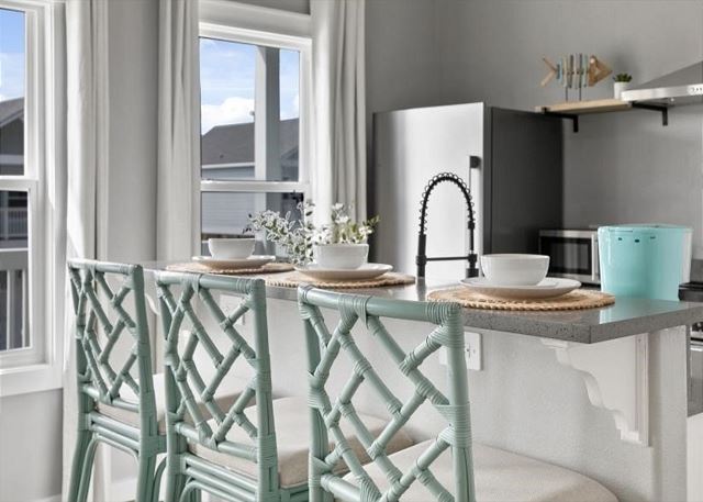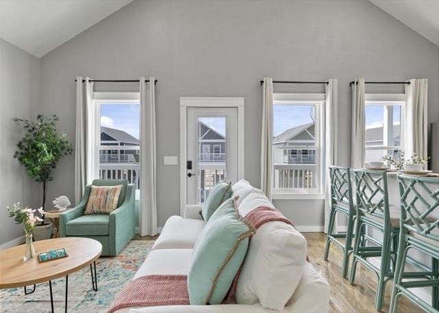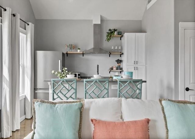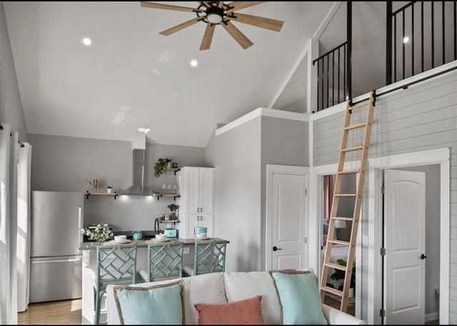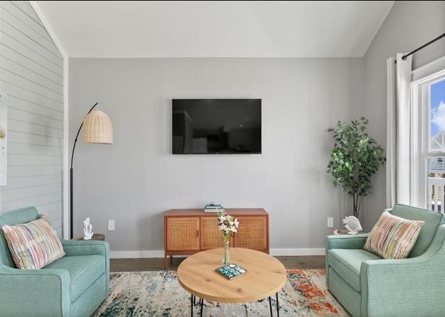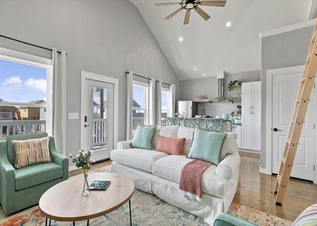 Livin' The Dream features coastal decor and comfy seating for the family in an open living/kitchen area. The kitchen is well-stocked with all you need to prepare your favorite meals, drinks, and snacks, Roku TVs in each bedroom, including loft and patio areas; Fully updated full bathrooms off main floor bedrooms; Kitchen is full of appliances, including Keurig Coffee maker for K-Cup lovers!