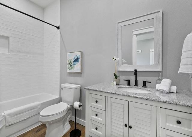 This home features two generous bedrooms, each equipped with its own en suite bathroom, ensuring maximum privacy and comfort. The inviting loft bedroom adds a touch of versatility and character. Neighborhood offers a pool, fire pit area, playground and lookout tower, and less than a (5) minute walk to the beach! Ideal for hosting up to (6) guests, this fully furnished short-term or long-term rental is the perfect escape for those in search of a chic and welcoming retreat. Immerse yourself in the ultimate experience of relaxation and luxury in this remarkable property.