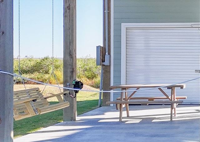 The lower patio is great for entertaining - you'll find a lighted area with a ceiling fan and outdoor television, and plenty of extra seating! There is a grill for your use, and an outdoor swing and picnic table. The sand shower is perfect for rinsing off a day spent on the beach and in the surf! Make wonderful memories when you visit Livin' the Dream!